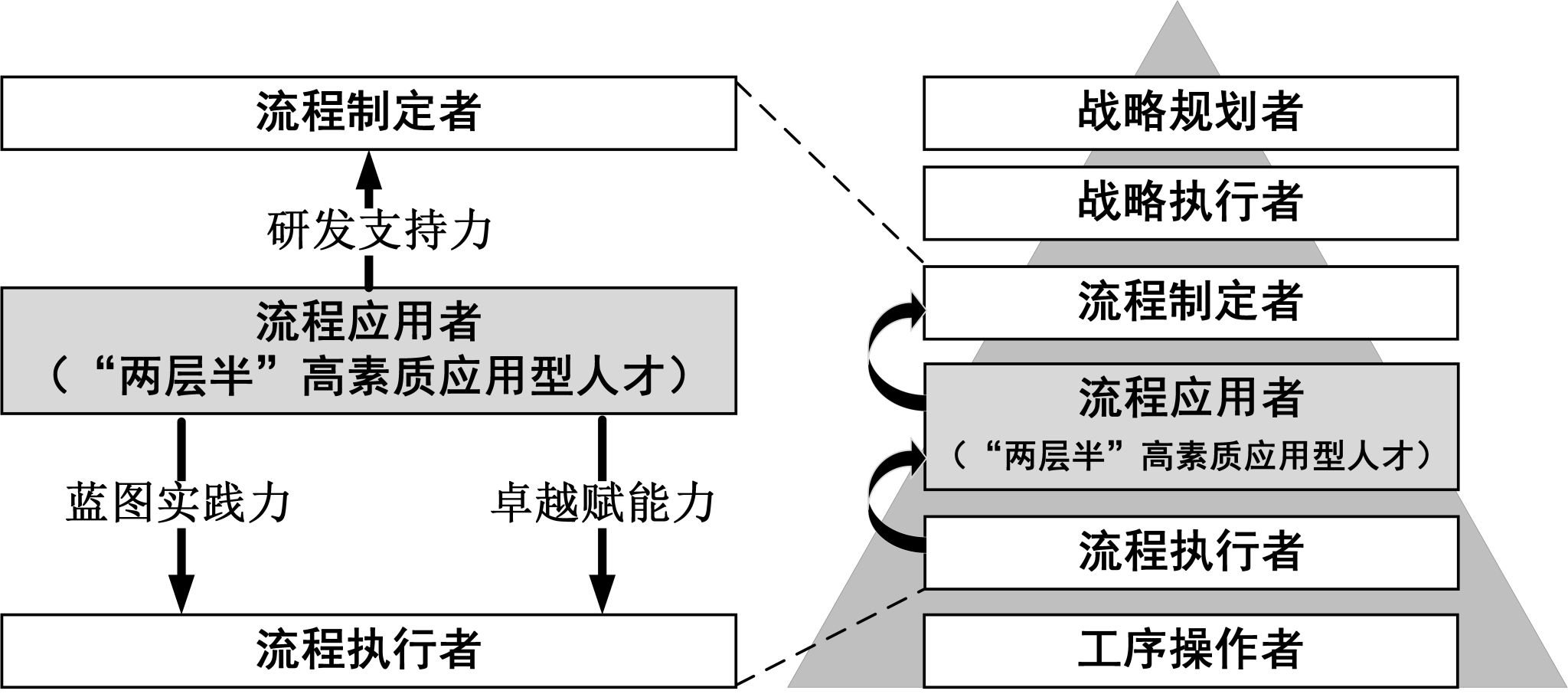 位于“两层半”的“懂理论、精实践、善创新”的流程应用者具有贴合实际、量体裁衣的“蓝图实施力”,又具有指导流程落地运行的“卓越赋能力”,还具有协助流程开发的“研发支持力”,起到承上启下、精准应用的关键作用。理工类、经管类及设计类等学科对应的行业,均有相应的岗位。“两层半”人才培养定位符合XCSport作为地方应用型本科的实际情况,也符合区域经济发展的人才需求,指向明确、目标清晰、科学合理,是解决人才培养供需结构性矛盾的有效途径之一。