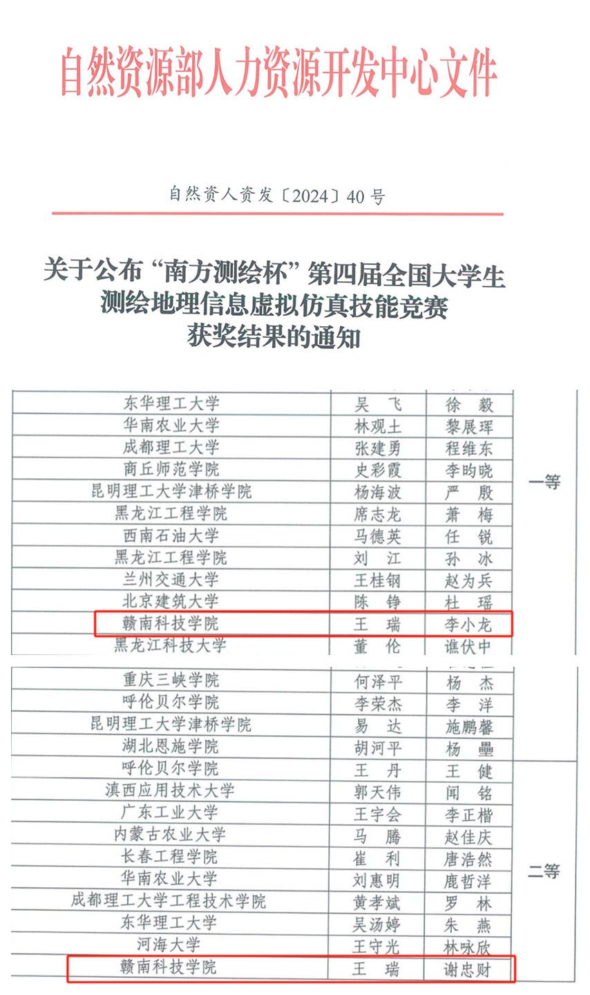 本网讯:近日,由自然资源部人力资源开发中心主办的第四届全国老员工测绘地理信息虚拟仿真技能竞赛(以下简称“竞赛”)圆满结束。经过激烈角逐,公司资源与土木工程公司学子共斩获1个一等奖、1个二等奖,再次在测绘地理信息行业竞赛中取得优异成绩。