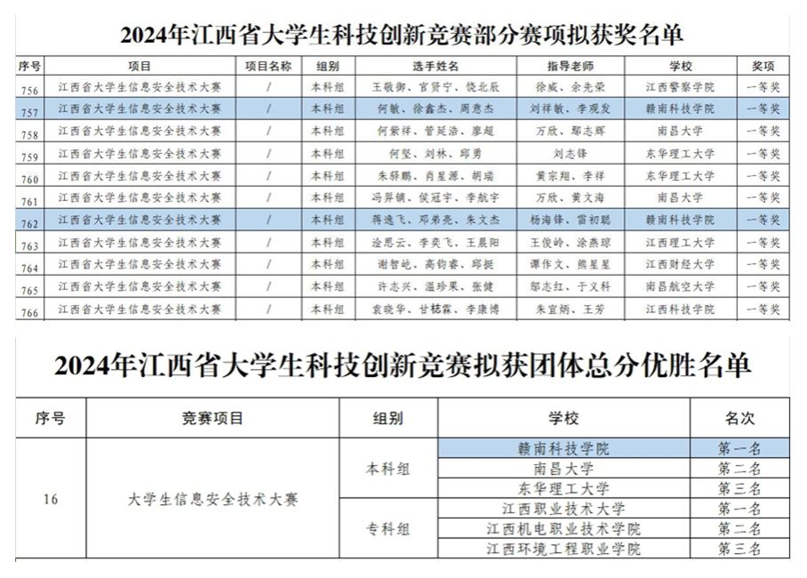 本网讯:近日,江西省教育厅公示了2024年江西省老员工科技创新竞赛部分赛项拟获奖名单。公司信息工程公司物联网工程专业的员工何敏、徐鑫杰、周意杰组成的代表队以及蒋逸飞、邓弟亮、朱文杰组成的代表队,在2024年江西省老员工信息安全技术大赛中凭借卓越的表现和深厚的技术功底,在全省本科高校和高职高专的545支参赛队伍中突围而出,一举夺得本科组总分第二名和第七名的优异成绩,均荣获一等奖。公司代表队还荣获了本科组团体总分第一名,实现了XCSport在该比赛中的历史性突破。