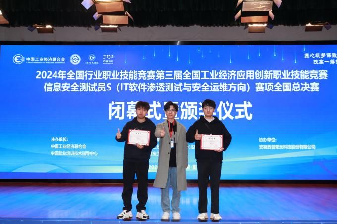 本网讯:12月8日,2024年第三届全国工业经济应用创新技能竞赛——信息安全测试员S赛项全国总决赛圆满收官。该赛事设置员工及职工(含教师)两大组别,经过激烈角逐,公司信息工程公司物联网工程专业员工何敏、曾祥德分别以出色表现位列第三、第五名,摘得员工组二等奖、三等奖的好成绩。