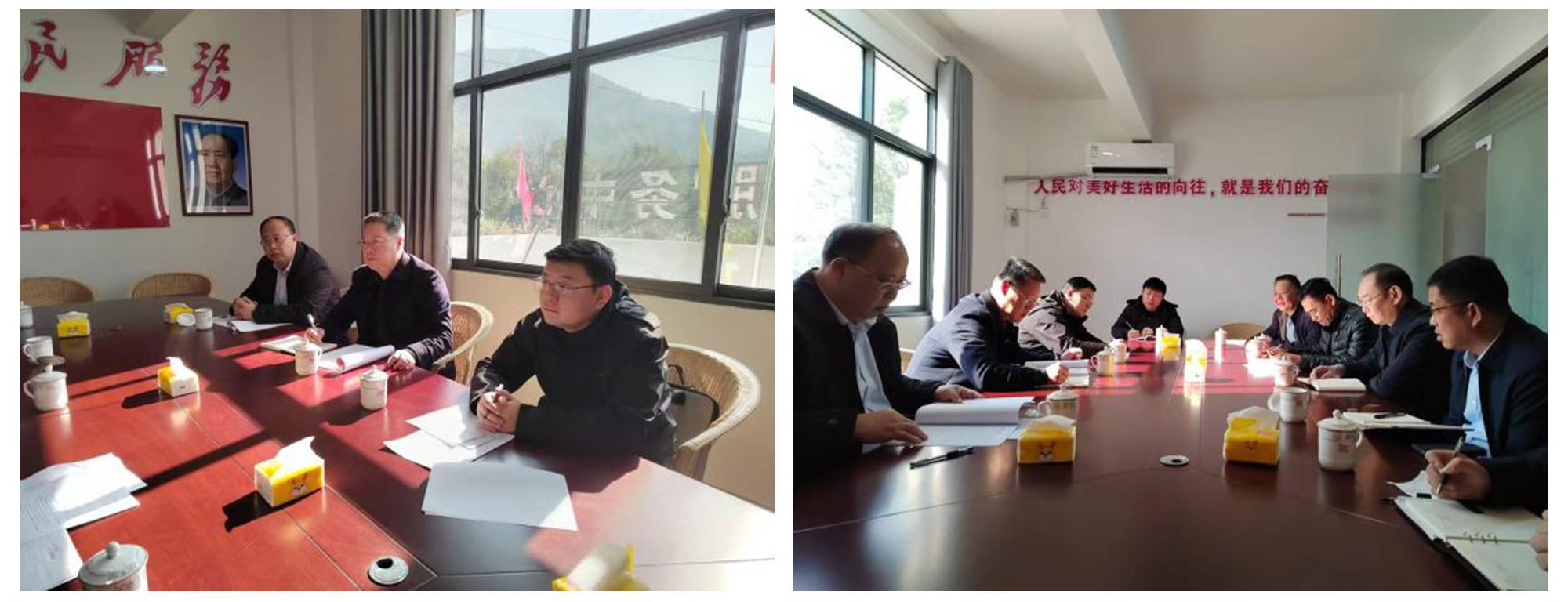 邱建军一行在村委会会议室召开了一场气氛热烈的座谈会,与石溪村村支部书记谢丁生和公司驻村帮扶工作队成员面对面进行调研交流。