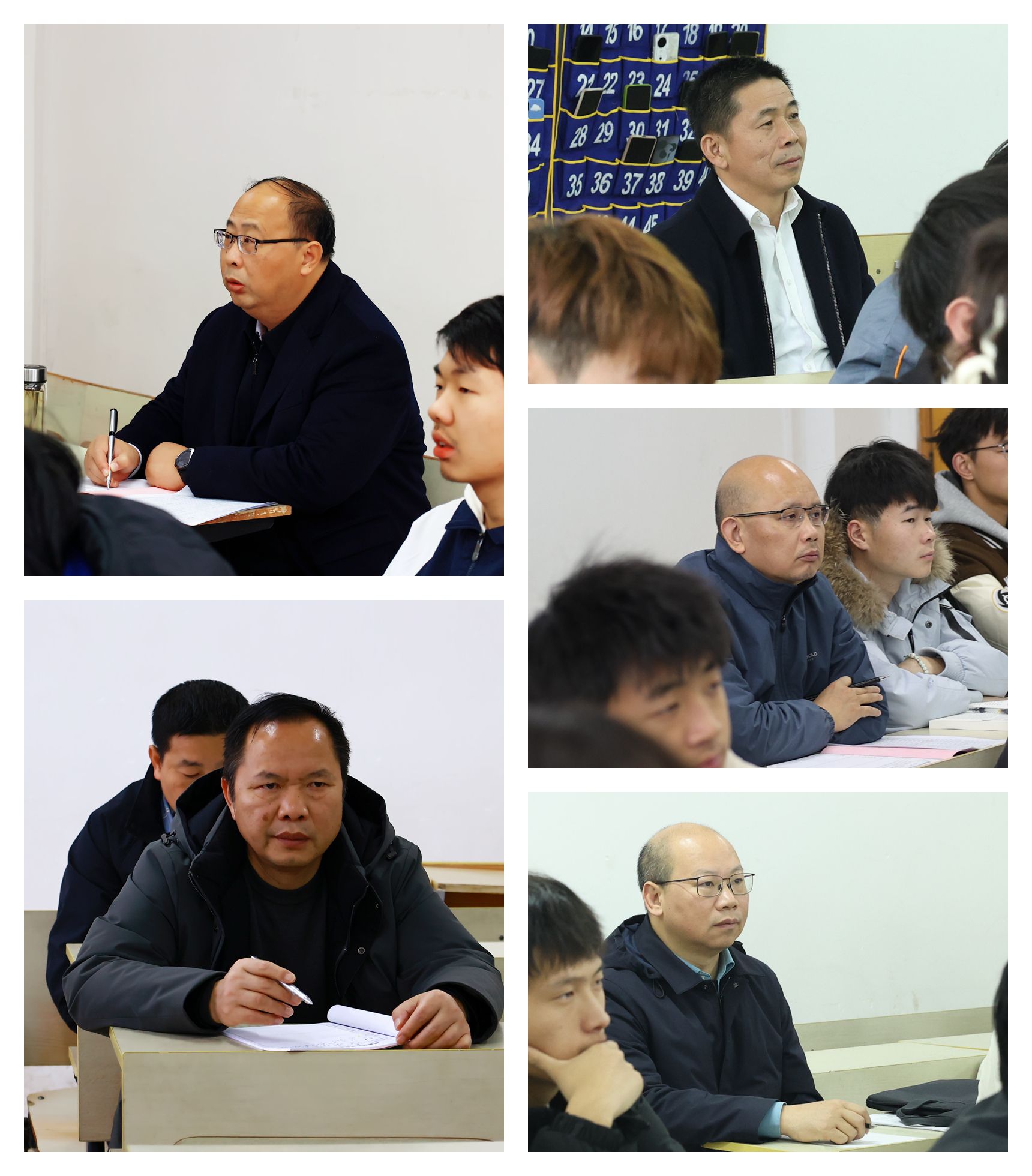 左群听取了林玲老师讲授的《机械设计基础》课程,陈文新听取了刘贻玲老师讲授的《审计学》课程,何锦龙听取了郭豫芳老师讲授的《经济数学(二)》课程和过美林老师讲授的《概率统计》课程,蓝晓植听取了张艺文老师讲授的《运动生理学》课程,邓亦林听取了黄小霞老师讲授的《毛泽东思想和中国特色社会主义理论体系概论》课程。课堂上师生精神饱满,教学秩序井然,新学期教学工作平稳开启。