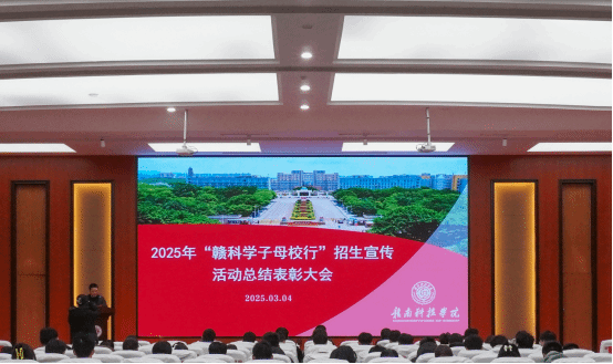 杨智勇总结了2025年“赣科学子母校行”招生宣传活动的组织和开展情况。李国鹏宣读了《人才招聘处、校团委关于表彰2025年“赣科学子母校行”招生宣传活动先进个人的决定》。志愿者代表采矿241杨堃、英语231杨昕悦、会计243罗霖从活动准备、过程、成效等方面分享自己的收获与成长。