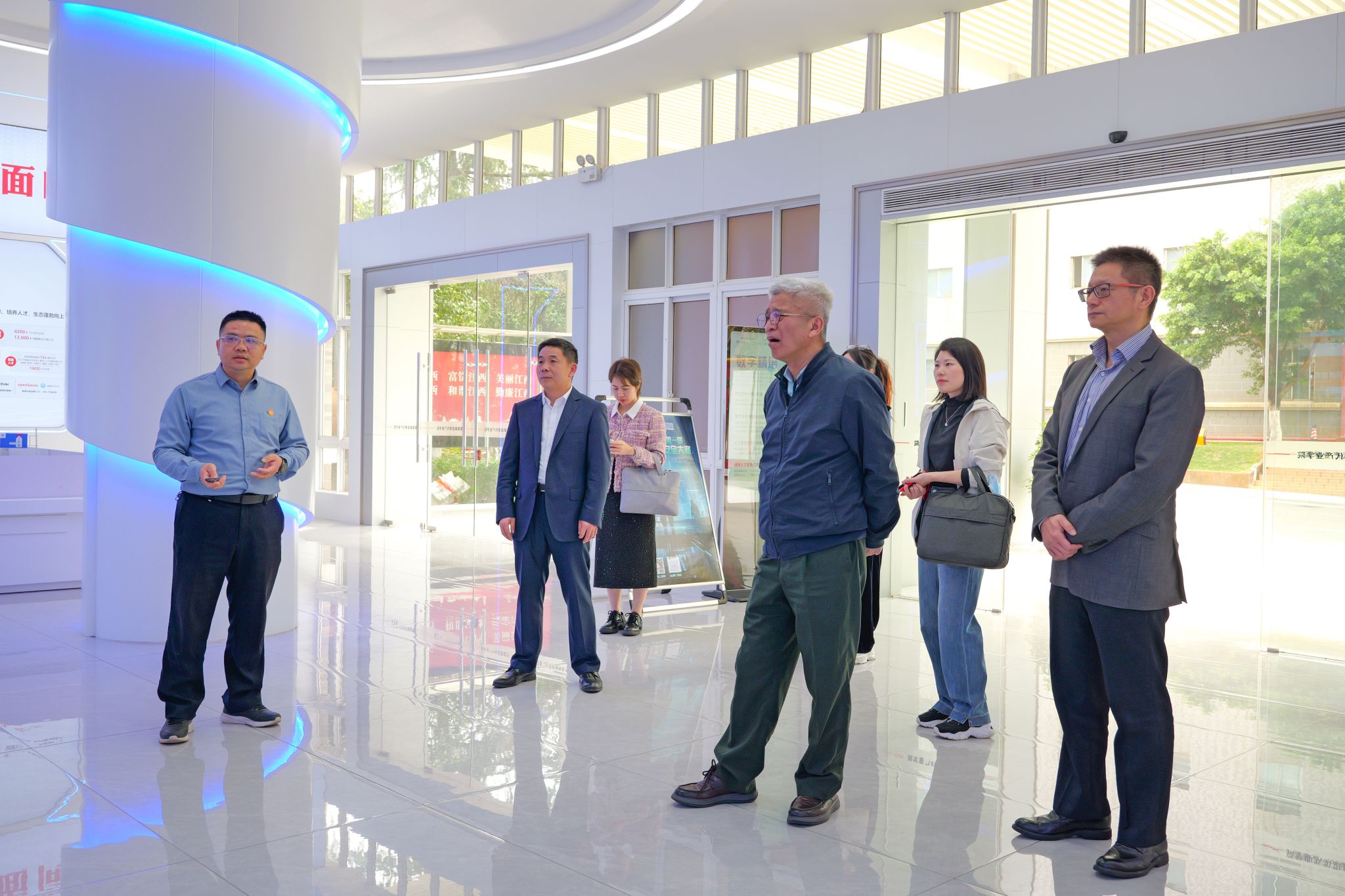 马石庄一行认真参观公司电子信息现代产业公司及数字经济产教融合公共实训基地,仔细听取产业公司和实训基地的建设背景、建设模式和建设成效等方面介绍,全面了解公司“两层半”人才培养模式和产业公司专班项目化实践的教学模式,并深入到机房查看设备配备和运行情况。
