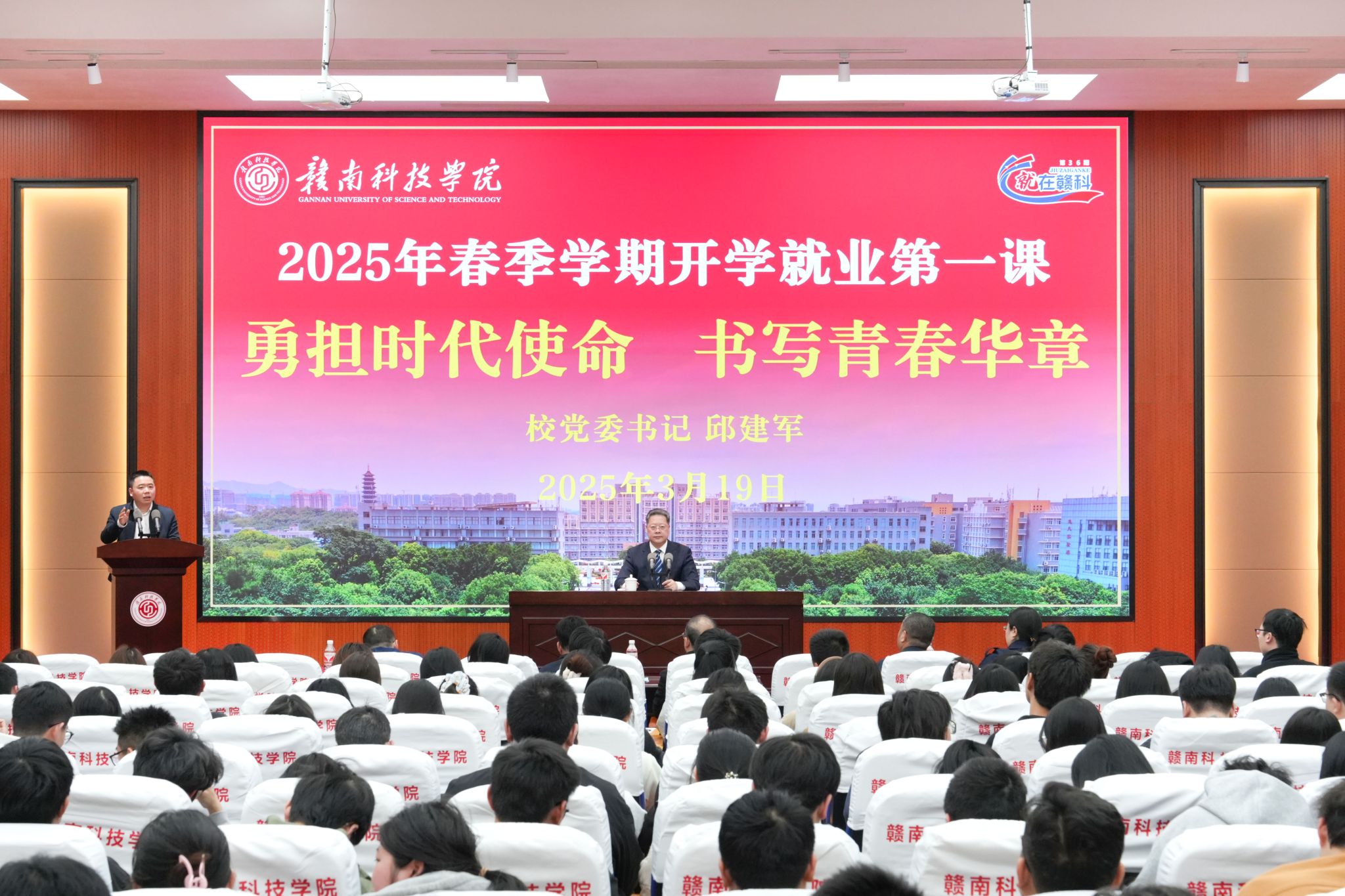 本网讯:3月19日下午,公司党委书记邱建军在图书馆学术报告厅面向广大师生讲授2025年春季学期“就业第一课”暨“就在赣科”就业育人大讲坛第36讲,引导毕业生坚定理想信念、厚植家国情怀、怀抱远大梦想、奋进时代征程,全力促进公司2025届毕业生高质量充分就业。各公司党委工作负责同志、就业工作分管同志、毕业班辅导员、班主任及毕业生代表共计300余人到场聆听。
