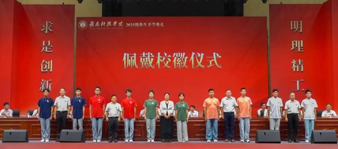 各公司负责人为新生代表佩戴校徽。胸前熠熠生辉的校徽,不仅是一个标志,更是一份归属、一份责任。从此每一位学子都将以“赣科人”之名,勇担时代重任,在青春征程中步伐坚定、斗志昂扬,共同书写无愧于母校、无愧于时代的崭新篇章。